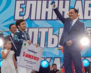 Әсерлі кеште облыс әкімі Ербол Қарашөкеев жеңімпаз оғланға су жаңа «Lexus LX 600» маркалы автокөлігі мен Тараз қаласынан 5 бөлмелі пәтердің кілтін тапсырды. Сондай-ақ, чемпионның жеке бапкеріне де «Hyundai Santa Fe» маркалы автокөлік пен облыс орталығынан 2 бөлмелі пәтердің кілті салтанатты жағдайда табысталды.Салтанатты іс-шара эстрада жұлдыздарының қатысуымен өткен мерекелік концертке ұласты. Жамбылдықтардың қуанышын бөлісуге келген «Алашұлы» тобы, Серік Ибрагимов, Төреғали Төрәлі, Ернар Айдар, Аdam, Тұрар, Kalifarniya көпшілік алдында өнер көрсетіп, кештің шырайын кіргізе түсті. Жамбылдықтардың делебесін қоздырған іс-шара ғаламат отшашумен аяқталды.